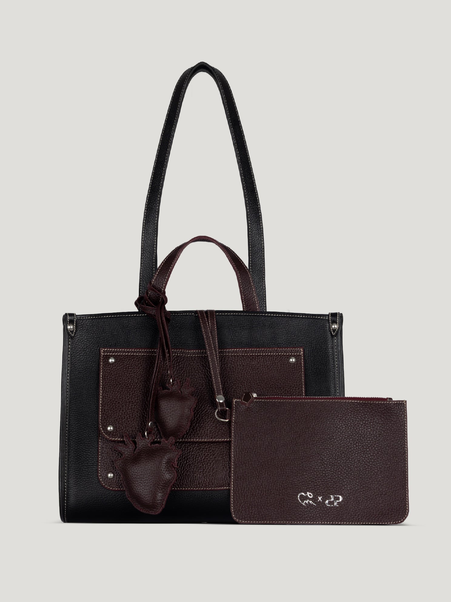 Crafted from premium genuine leather, this exclusive Nuniz piece is designed in collaboration with Design Point in support of the Magdi Yacoub Heart Foundation. Rendered in timeless black and accented with a bold burgundy front pocket, the design is elevated by a heart-shaped burgundy charm that symbolizes generosity, hope, and impact.